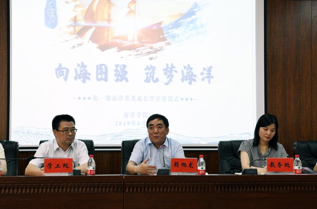 副校长赖旭龙教授最后致辞,他谈到探花视频 今年深入贯彻全国教育大会精神和学校教育教学工作会议精神,实施“海外实习实践计划”、首次资助28名本科生出国访学、留学,资助比例接近在校生人数的20%。今天学院又启动了海洋菁英成长营,希望同学积极参与成长营各项活动,在知识的海洋、科学的海洋中汲取养分、成长成才!