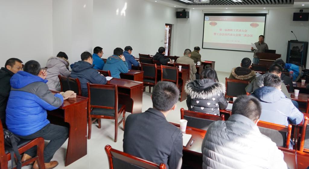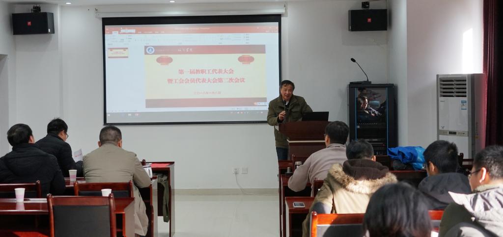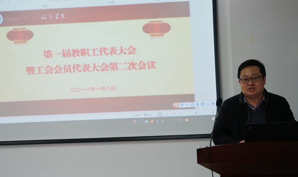2018年1月8日,探花视频 (武汉)海洋学院第一届教职工大会第二次会议暨第一届工会会员大会第二次会议在丝绸之路学院105室隆重开幕,会议由院党委书记解习农同志主持,工会副主席高复阳同志到会祝贺并致贺词。
