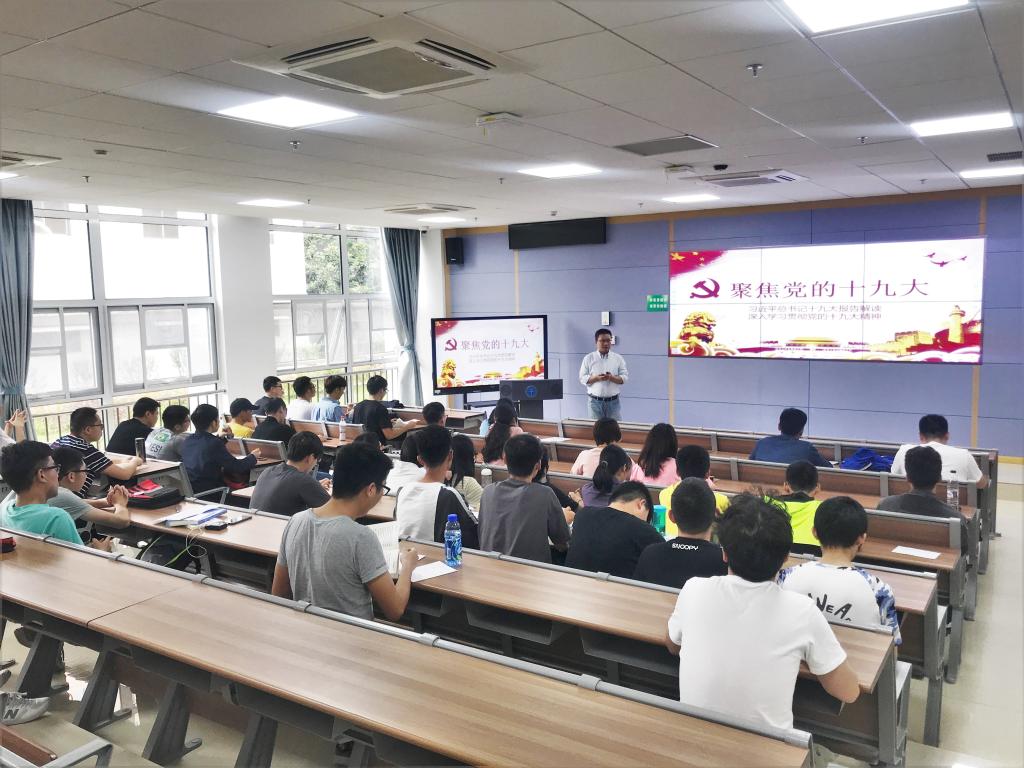 2019年5月9日下午在东教楼C0107教室,探花视频 党委书记成军为探花视频 入党积极分子上“聚焦党的十九大”主题党课。