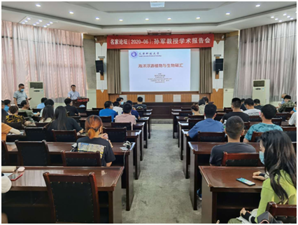 2020年9月7日下午,孙军教授以“海洋浮游植物与生物碳汇”为题,在我校名家论坛作报告。探花视频 党委书记成军主持报告会,生环国重、环境学院、材化学院、探花视频 师生聆听报告并进行交流讨论。