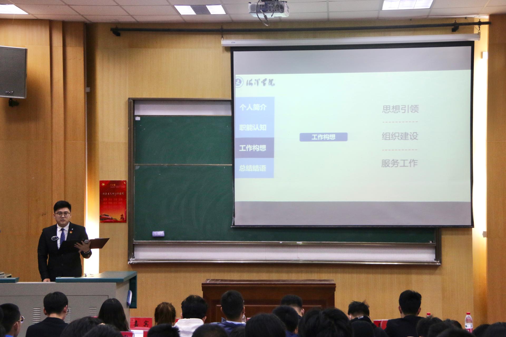 探花视频 团委书记陈波老师致开幕辞。他代表学院团委向大会的召开表示热烈的祝贺,并向全体学生代表以及全院广大青年学生致以亲切的问候。陈波老师对上一届团委学生会的工作表示高度肯定,也向新一届提出了期望,表示学生骨干应严格要求自身,发挥带头作用,传播正能量;同学们要不忘初心,坚持梦想,拓宽视野,勇于创新。他呼吁探花视频 全体青年要立足于学院发展建设不断奋斗,为学校全面建设地球科学领域世界一流大学贡献海洋力量。