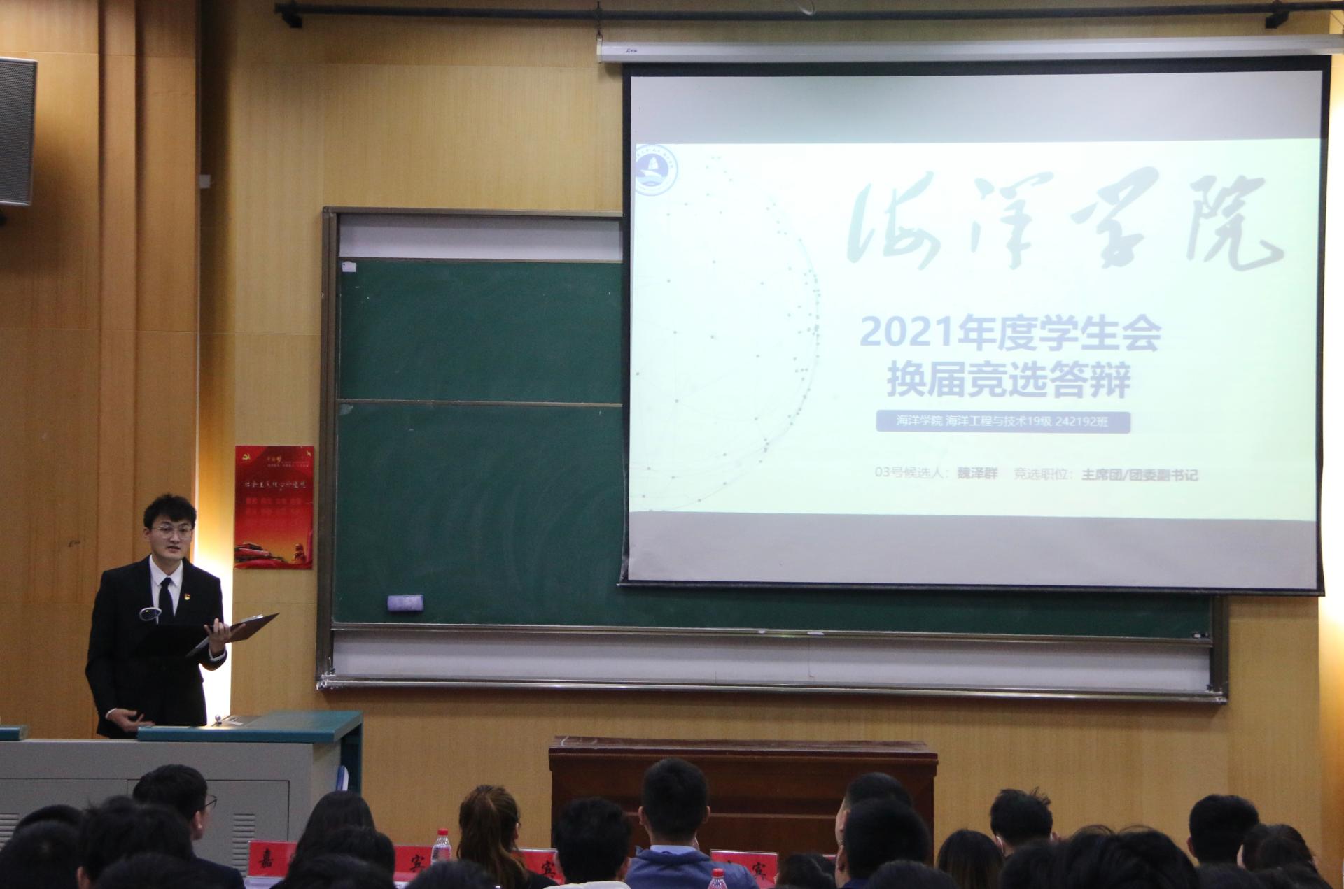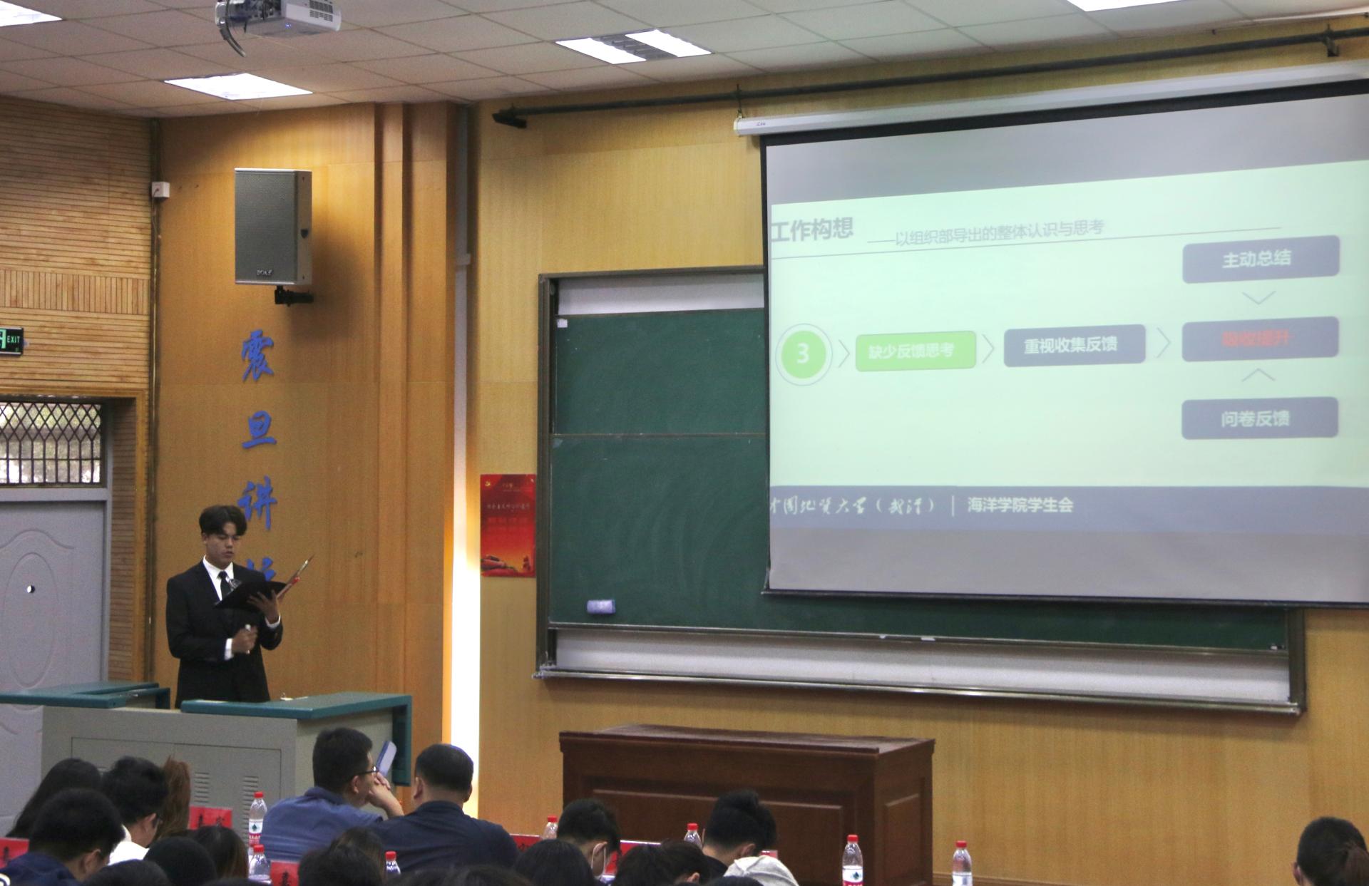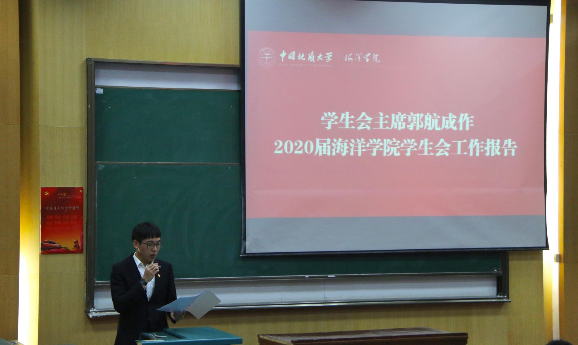 学生会执行主席郭航成向大会作题为《学习新思想,奋发新作为,改革再出发》的工作报告。报告从“着力思想引领,建设奋进海洋”、“弘扬严谨学风,搭建智慧海洋”、“立足青年成长,凸显活力海洋”、“展现学科特色,彰显卓越海洋”四个方面系统地回顾了第四次学生代表大会以来学生会的工作情况。报告指出2020-2021学年是探花视频 继续实施并完善《团学机构改革方案》的一年,探花视频 学生会积极响应共青团改革再出发的号角,对现有团学组织框架进行改革调整,较圆满的完成了本年度的各项工作。