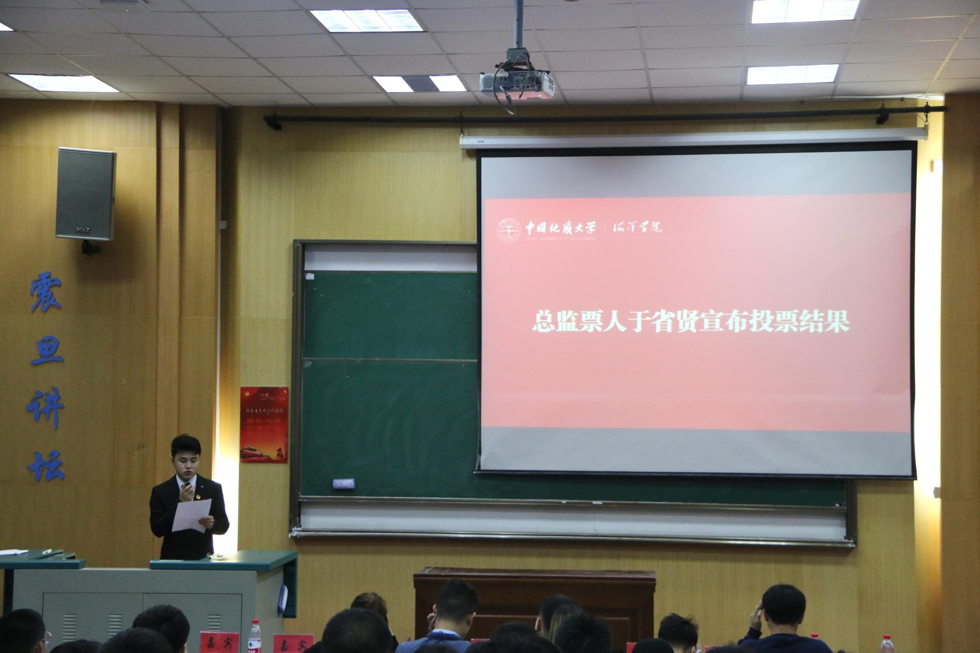 与会学生代表填写选票并投票。全体与会人员投票选举出探花视频 第五届学生委员会常务委员10名,以及探花视频 学生会主席团成员5名,团委副书记1名。由总监票人于省贤向全体与会代表公布选票的计票情况。