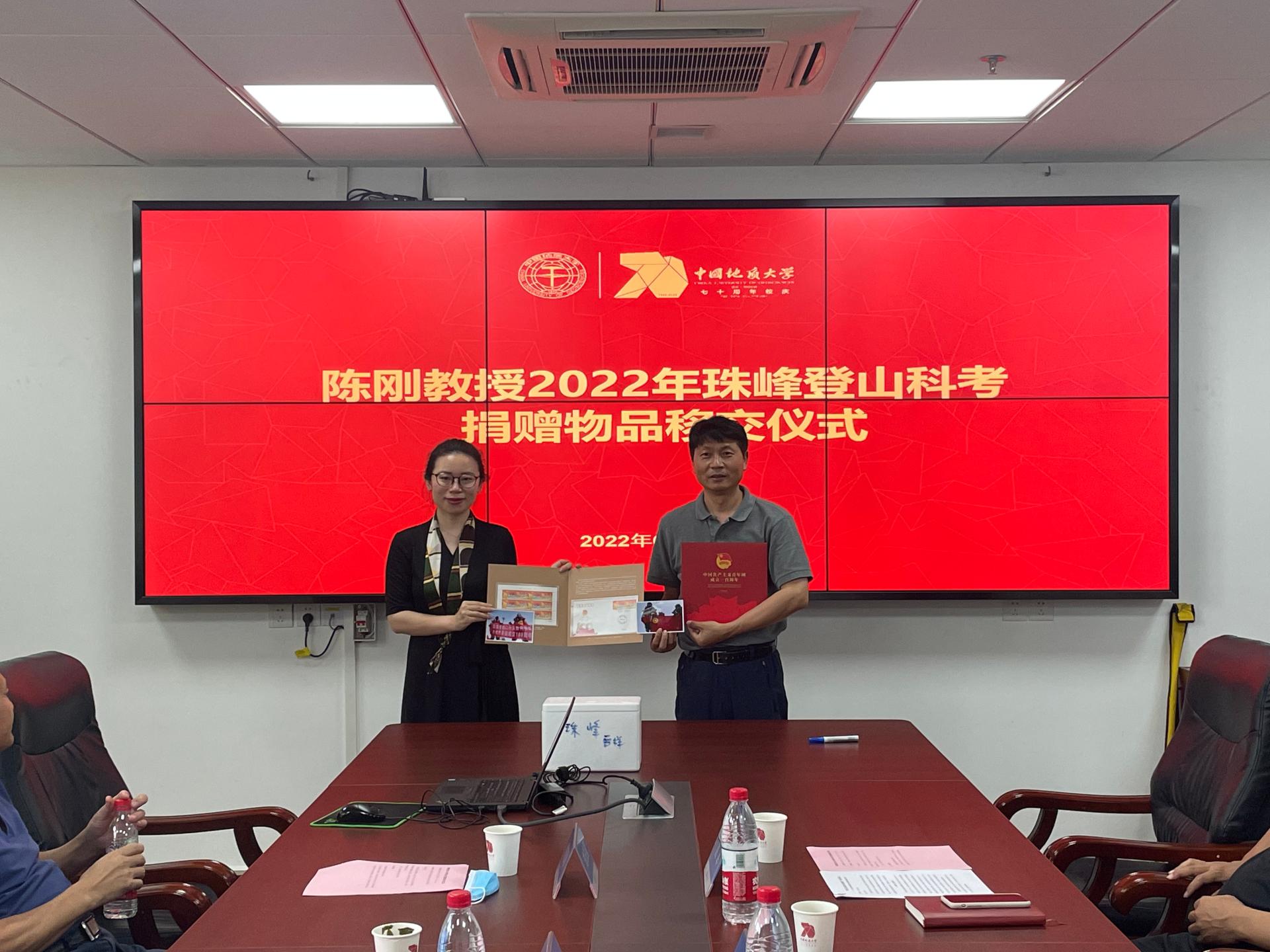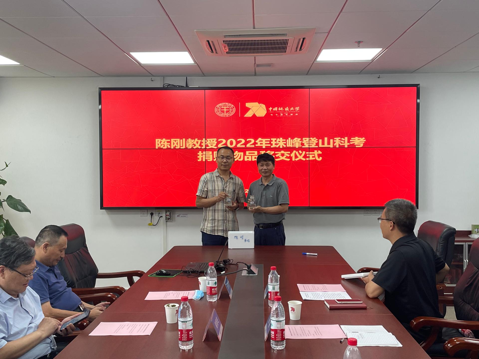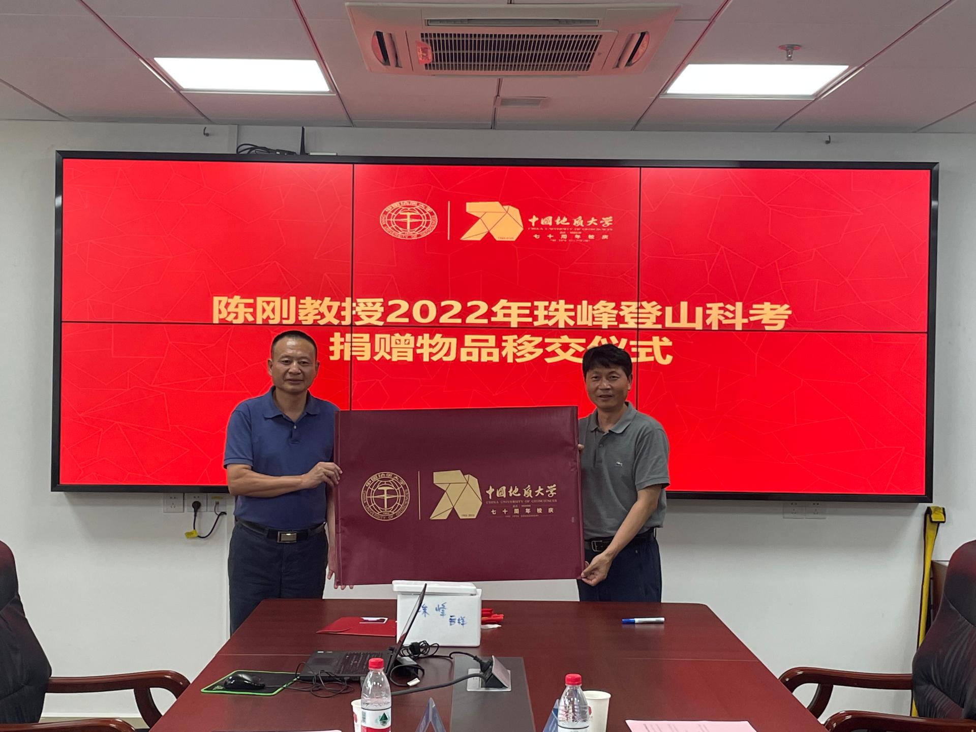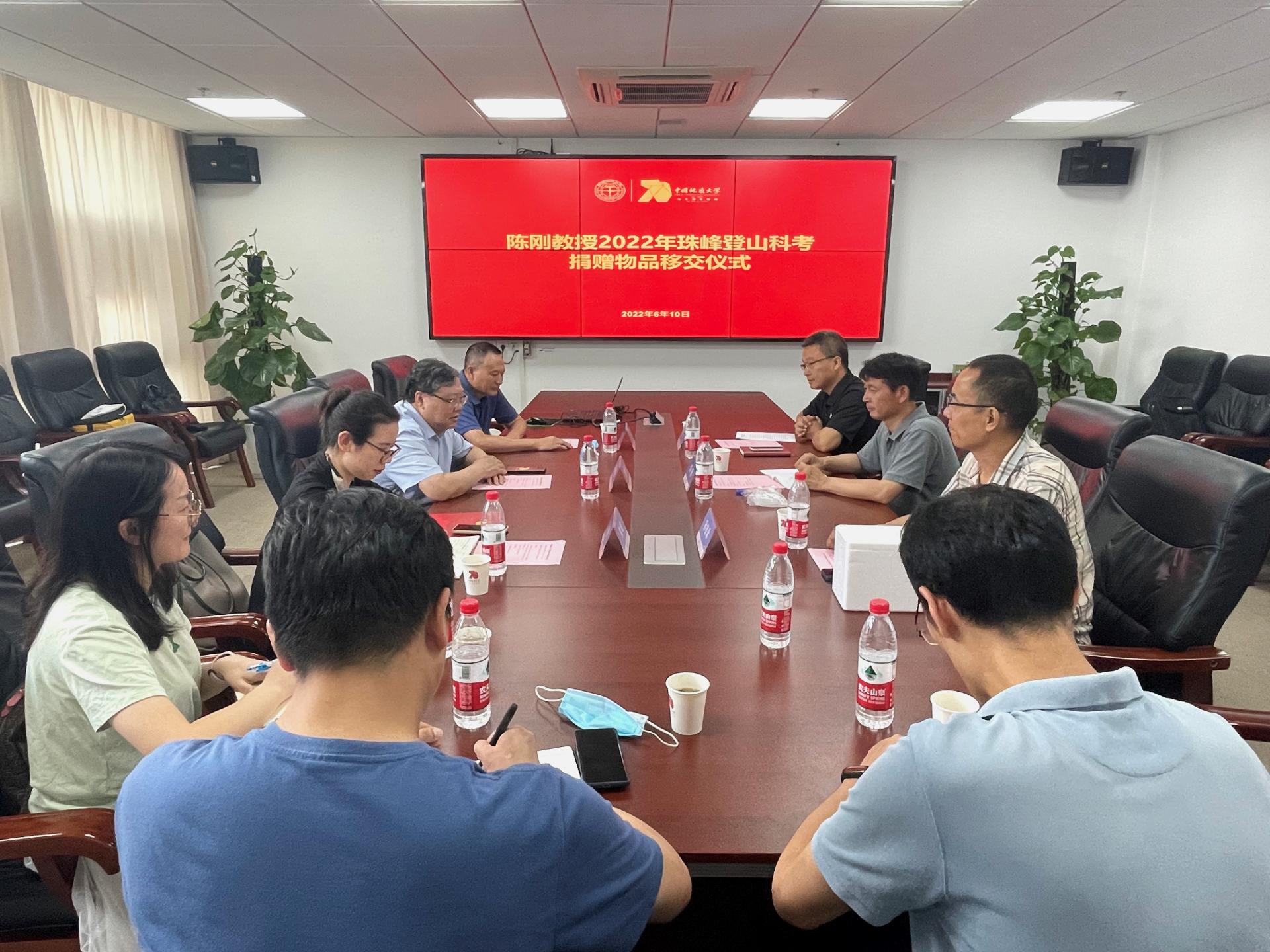 6月10日下午,陈刚教授2022年珠峰登山科考捐赠物品移交仪式在南望山校区东区教学综合楼A1804会议室举行。校党委常委、宣传部部长、校庆工作办公室主任储祖旺,探花视频 陈刚教授,图书档案与文博部、校团委、环境学院和探花视频 等相关单位负责人参加仪式。