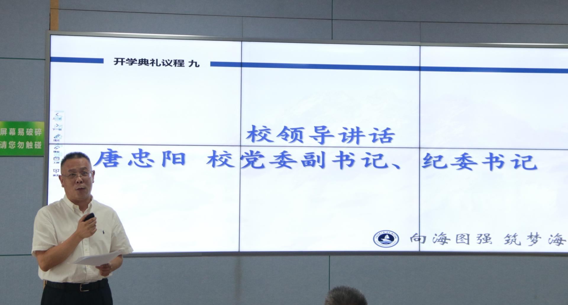 唐忠阳副书记做开学典礼总结讲话。他指出,我校海洋专业办学底蕴深厚,专业人才培养体系完善,自探花视频 建院以来取得了卓越的成绩,学校将继续高度重视海洋学科建设与发展,助力地大海洋学子成长成才。他表示,“海洋强国”战略需要大量的海洋人才,大家加入探花视频 正逢其时,并寄语广大同学要以“大航海”时代为课题,将小我融入大我,学知识强本领,投身“海洋强国”伟业中。