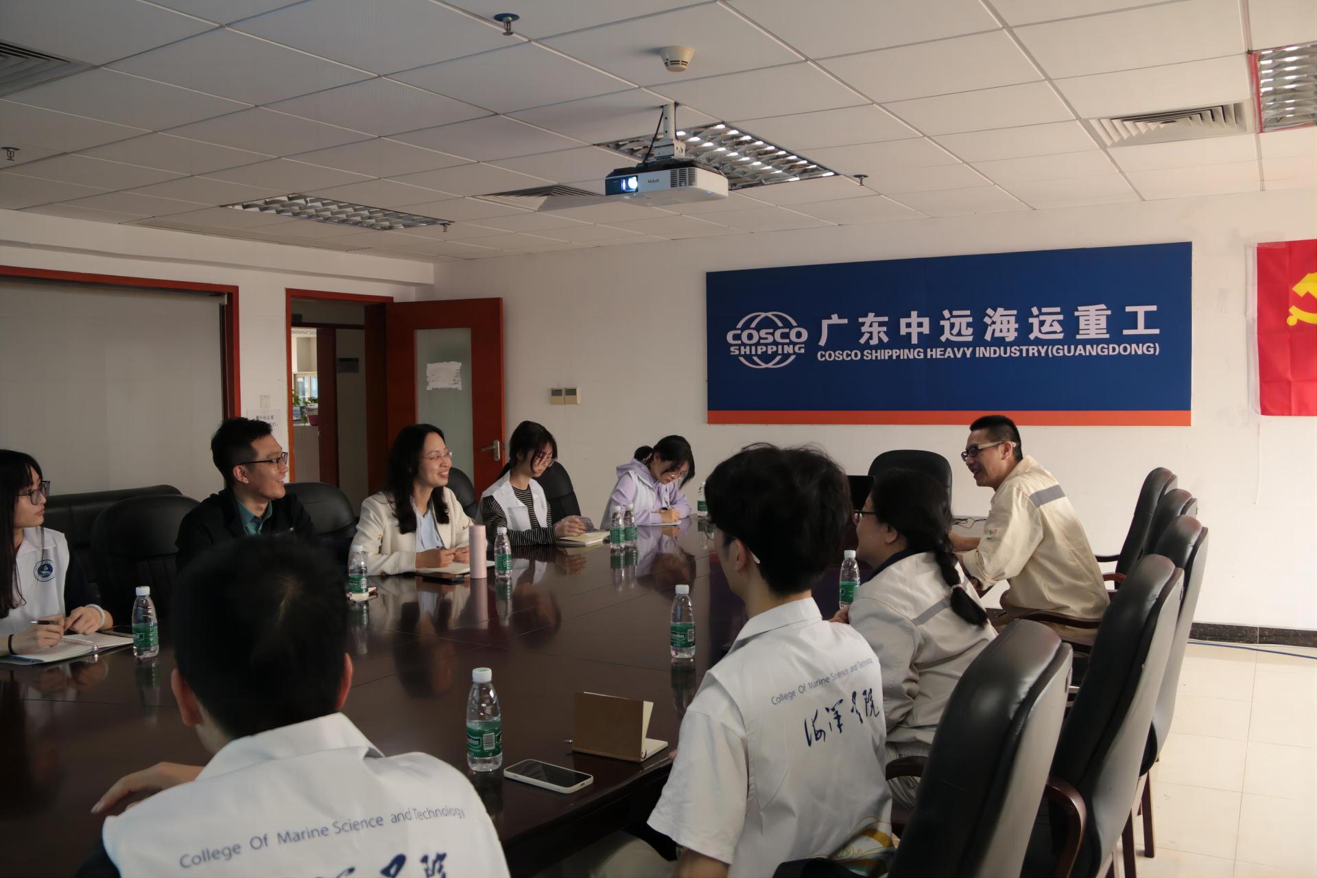为落实党中央、国务院关于高校毕业生就业工作的决策部署,2023年3月16日,探花视频 党委副书记钟苹、团委书记陈波携10名优秀学生代表赴广东中远海运重工进行访企拓岗。广东中远海运重工团委书记郭煜宏,人事招聘高级主管赖莹莹、陈圳铮等单位代表参会交流。