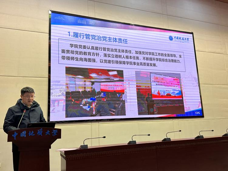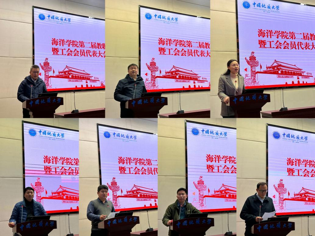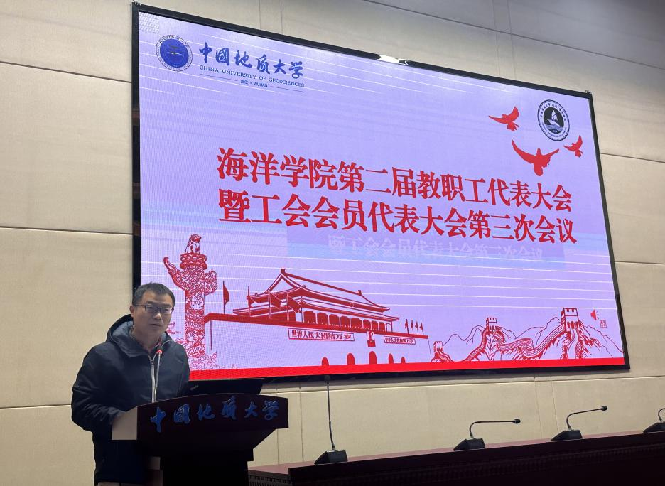 孙军院长代表向大会作工作报告,回顾了学院年度工作,报告了学院年度财务情况。2023 年,学院党委以主题教育为主要抓手,深入学习贯彻党的二十大精神和学校第十三次党代会精神,坚持党的全面领导,夯实基层党的建设,打造“山海求知”党建品牌。以内涵式发展推动学科建设,海洋科学在教育部第五轮学科评估中被评为B+;新增8项省部级科技奖励,人年均科研经费位居学校前列。教师队伍规模稳步增长,队伍结构不断优化,2人次获评“中国孙枢奖”“海洋强国青年科学家”。人才培养质量持续提升,喜获国家教学成果二等奖、湖北省特等奖、省级一流本科课程;重启海外实习实践计划,深入开展访企拓岗,本科生就业率连续7年超过97%,本科生升学率连续7年超过60%。持续拓展办学资源,滨海研究院投入运营,获批国家自然科学基金、广东省基础研究和应用研究项目申报依托单位,科学研究高位启动。