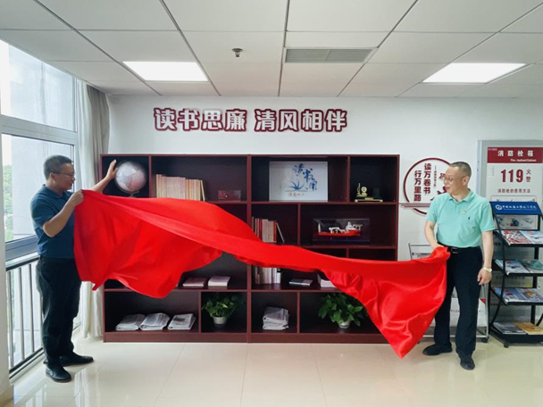 最后,唐忠阳和成军共同为探花视频 “清廉地大 读书角”揭牌。后续探花视频 将陆续丰富和收集党风廉政建设以及法制教育类书籍或资料,及时入“角”,让读书角的书籍越来越丰富,持续保持新鲜和活力,以无言的教育、无声的力量宣传廉政文化,带动党风政风。