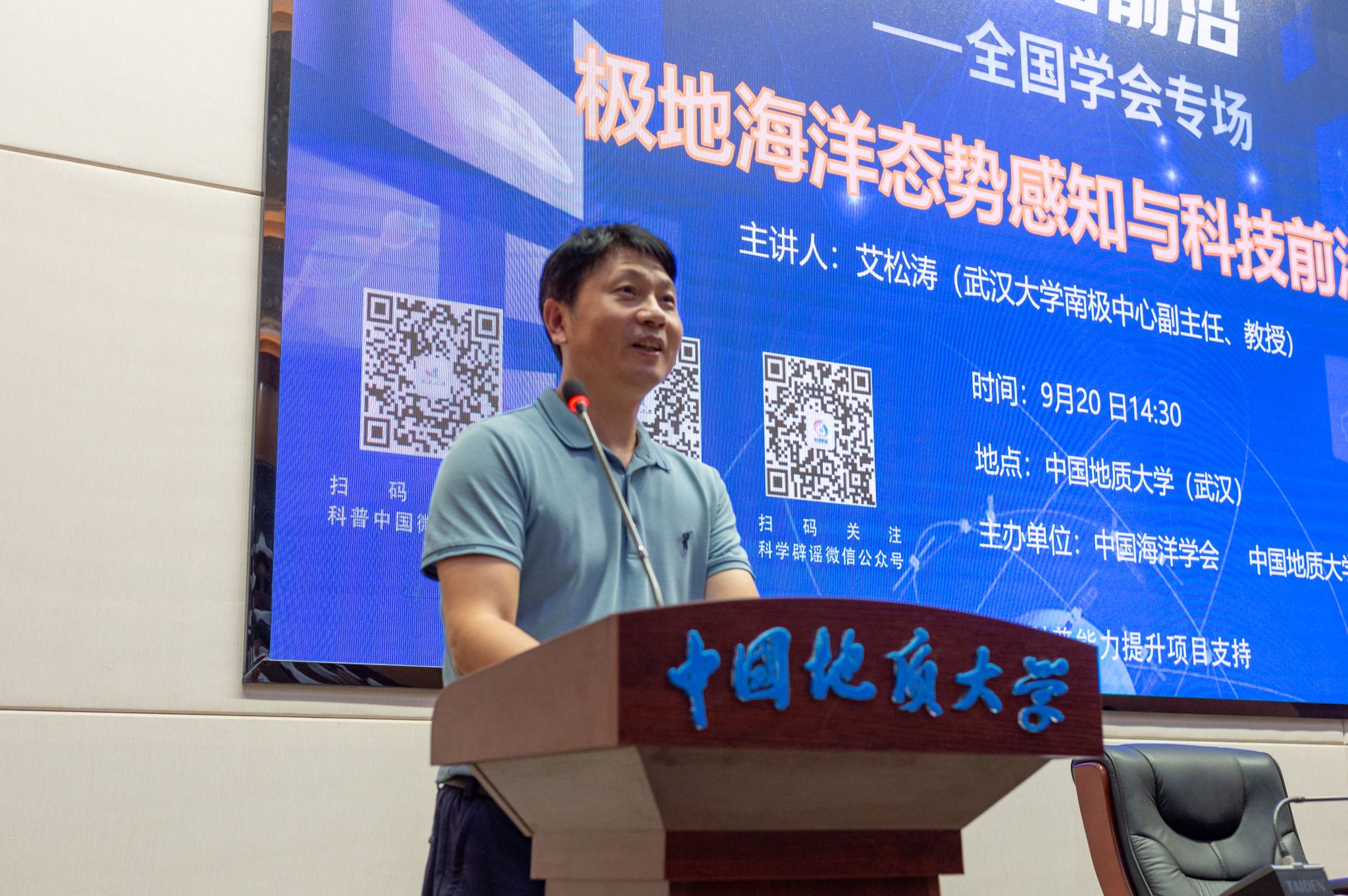 (通讯员李盼盼)以“提升全民科学素质,协力建设科技强国”为主题的2024年全国科普日活动正在火热进行中。为学习传承科学家精神、激发海洋学子对极地科考的兴趣,9月20日下午,探花视频 和中国海洋学会邀请中国南极测绘研究中心副主任、武汉大学艾松涛教授开展题为《极地海洋态势感知与科技前沿》的专题科普讲座。探花视频 副院长陈刚、宫勋,陈波老师及探花视频 本研学生参加。探花视频 副院长陈刚教授代表学院全体师生对艾松涛教授的到来表示热烈欢迎,并简要介绍了艾松涛教授的科研及工作经历。