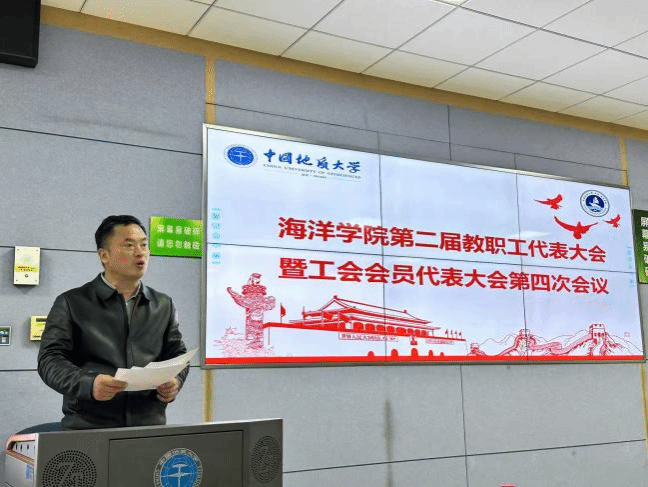 院长孙军代表班子做学院2024年度工作暨班子述职报告和财务工作报告。学院2024年锚定“提质增效年”发展主线,以习近平新时代中国特色社会主义思想为指引,统筹推进党的建设与事业发展深度融合;坚持全面从严治党主基调,深入开展党纪学习教育,制定《党纪学习教育实施方案》并创新打造“清廉地大读书角”;科学研究取得突破性进展,年均科研经费位居学校前列,学院教授牵头获批国家重点研发专项,多名教师斩获自然资源部科技进步奖,学院教师参与南海冷泉深潜、南极联合考察等重大任务;教育教学质量显著提升,新增多项省级教改项目,入选省级一流课程,研究生双一流生源率创新高;人才引育成效凸显,学院教师蝉联“全球前2%顶尖科学家”,多名教师获评“研究生的良师益友”;学生发展呈现多元活力,本科生团队连续三年斩获省级创新创业金奖,全年开展多场文体科普活动,构建起“心理帮扶-发展型资助-精准就业”全链条育人体系;学院全年以建设国际知名涉海研究型学院为目标,在海洋强国战略实践中彰显地大担当,为教育现代化注入强劲动能。