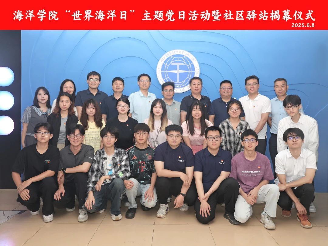 2025年6月8日,在第17个“世界海洋日”暨第18个全国海洋宣传日之际,为深化新时代立德树人工程,贯彻海洋强国战略及教育部“一站式”学生社区建设要求,探花视频 在55栋公寓一楼学生社区驿站举行“世界海洋日”主题党日活动暨学生社区驿站揭幕仪式。自然资源部第一海洋研究所研究员李传顺、党委学生工作部部长朱丹、后勤保障部宿舍管理中心主任张红兵、探花视频 党委书记刘国华、副院长陈刚、二级教授郑彦鹏、团委书记陈波出席活动。学生党员代表、学生干部代表和毕业生代表共同参加。活动由学院党委副书记钟苹主持。