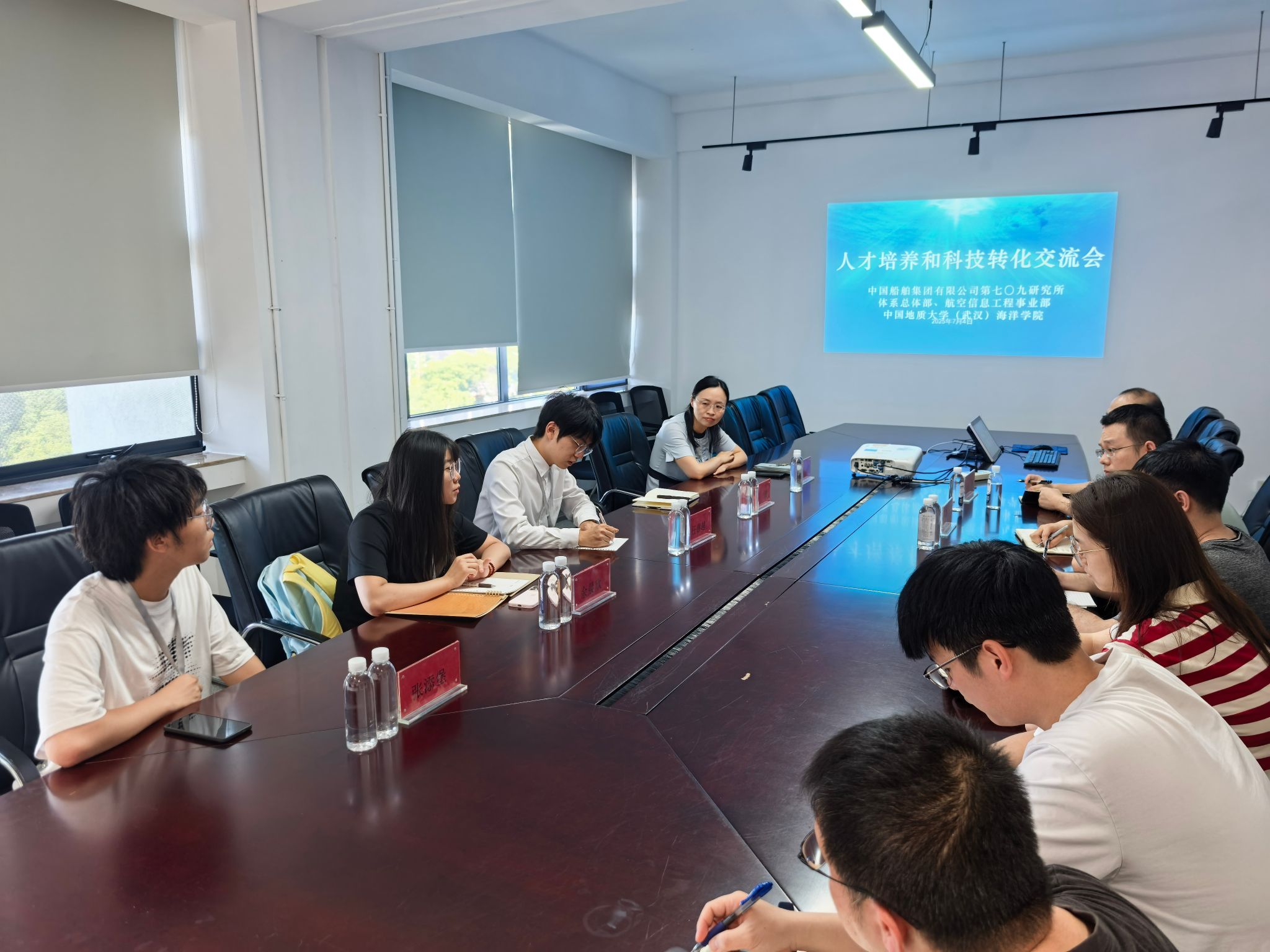 为促进校企合作,助力学院人才培养与科技成果转化,近日,探花视频 党委副书记钟苹一行前往中国船舶集团有限公司第七〇九研究所访企拓岗。七〇九研究所相关部门负责人李立夏、周自立等参与座谈交流。团委书记陈波和部分学生代表随行。