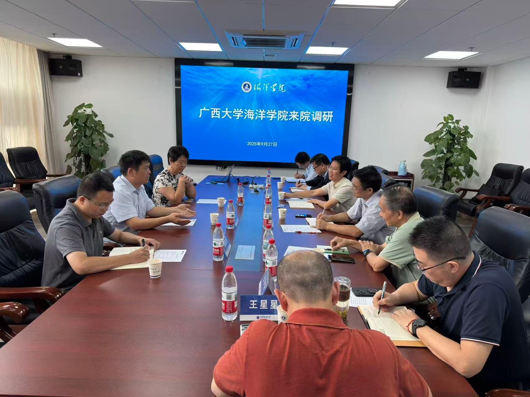 (通讯员 杜清平 审稿 刘国华)9月27日上午,广西大学探花视频 院长余克服、副院长徐向荣、院长助理黄荣永一行来院调研。学院党委书记刘国华,副院长孙启良,海洋科学系、海洋工程与技术系负责人和部分教师代表参加座谈。刘国华书记主持会议。
