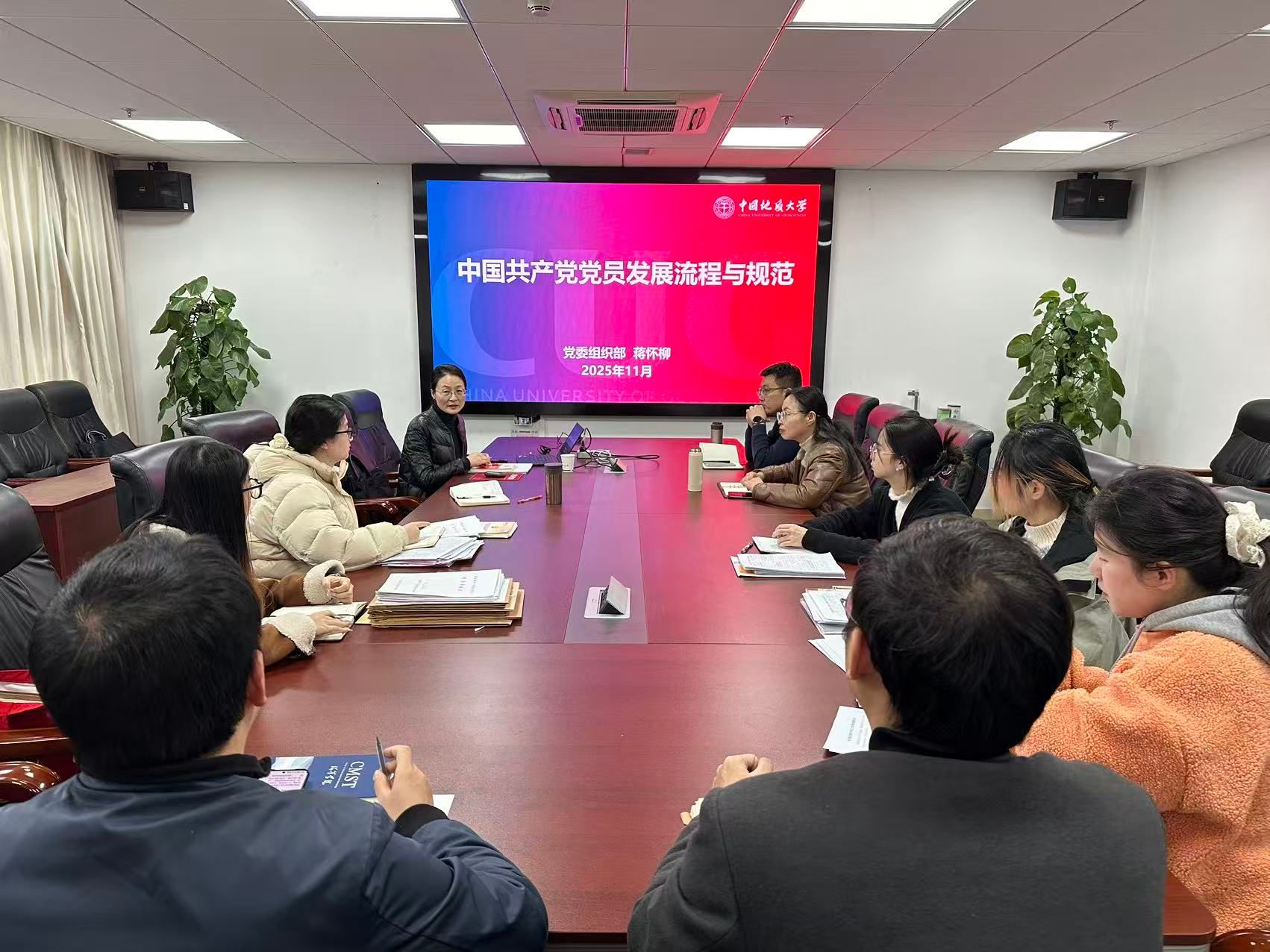 为进一步规范发展党员工作流程,提升党务工作者业务能力,严把党员“入口关”,2025年12月10日,探花视频 举行党务工作讨论会。党委组织部正处级专职组织员蒋怀柳到学院指导工作。学院党委书记刘国华、党委副书记钟苹、团委书记陈波、组织秘书韩瑞以及学院各师生党支部书记参会学习。