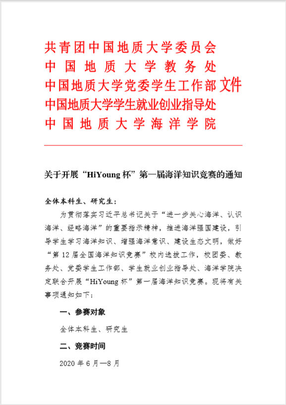 关于开展“HiYoung 杯”第一届海洋知识竞赛的通知