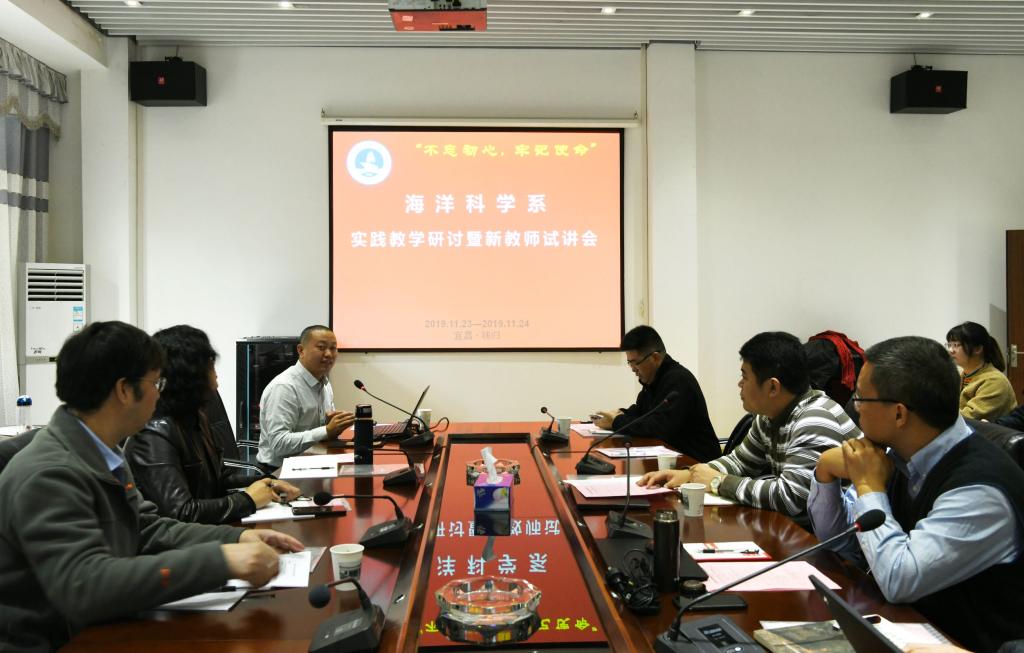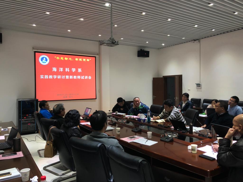 11月23日下午,在系主任杜学斌老师的主持下,海洋科学系何云龙、曹立成两位新进教师进行了试讲,全体与会老师针对两位老师的试讲提出了很多建议,以帮助两位老师尽快通过“教学关”。在之后的集中讨论环节,老师们就现阶段本科生实践教学中遇到的诸如大类招生实践教学内容统一规划、舟山实践教学经费,舟山、北戴河、周口店、秭归实践教学内容互补等问题展开了深入的讨论,并规划了海洋科学系未来实践教学及实习基地建设的建设方案。