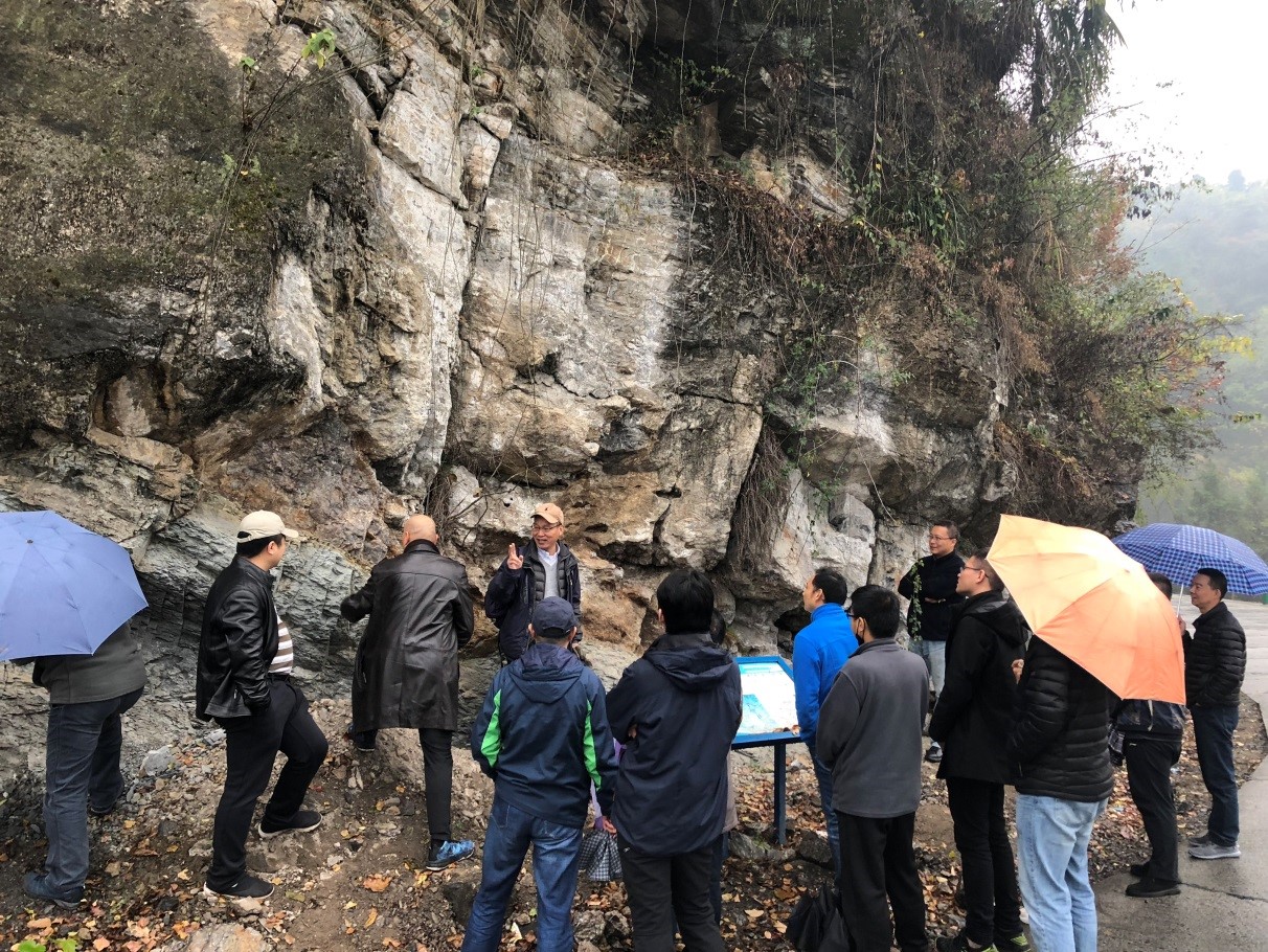 11月24日上午,冒着霏霏细雨,全体与会教师赴三斗坪-花鸡坡-九龙湾野外教学路线开展现场教学研讨。在各个地质现象观察点,副院长王家生教授系统地介绍了该路线出露的地层单元岩性特征、沉积构造和成因机制,生动阐释了该区地质环境变迁过程和科学研究意义。参与教学研讨的各位老师认真的听取王家生老师的讲解,并就所观察到的各种地质现象展开了热烈的交流和研究。