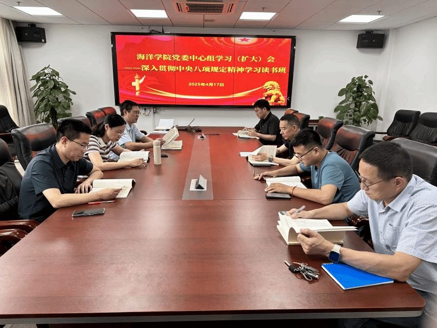 在交流研讨中,党委书记刘国华围绕习近平总书记关于作风建设“关键在党、关键在人”的论述,结合学院工作实际,指出“作风建设是永恒课题,必须常抓不懈、久久为功”;党委副书记钟苹认为:“落实八项规定需从细微处发力,坚决纠治师生反映强烈的形式主义问题”;副院长孙启良提出:“将作风建设融入学科建设,以务实学风带动科研创新”;海洋科学系党支部书记佟殿君表示:“要从学院发展实际出发,结合八项规定精神谋求发展之道”;党委委员雷超表示:“作风建设不仅是政治命题,更是民心工程,唯有以‘钉钉子精神’常抓不懈,方能永葆党的健康,筑牢长期执政根基”;院直党支部书记杜清平聚焦党员教育管理,建议“以典型案例为镜鉴,筑牢纪律防线”;海洋工程与技术系副主任赵恩金表示:“‘四风’不能止步于阶段性成果,而需融入日常、抓在经常,让党员干部在潜移默化中养成纪律自觉