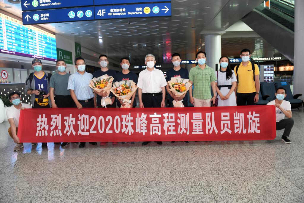 6月3日下午,2020珠峰高程测量登山队3名地大勇士从拉萨返回武汉。探花视频 副校长傅安洲,探花视频 党委书记成军、体育学院院长董范和部分师生代表到武汉天河国际机场迎接。
