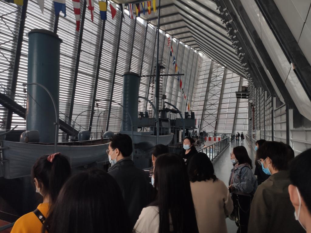 离开博物馆前,回望大厅展馆中的中山舰,后人的修补遮不住名舰的光芒,每一个来到博物馆瞻仰中山舰的同学,在这无言的铁皮之下都能读出这样一个道理:伟大事业征途漫漫,以史为鉴扬帆远航。