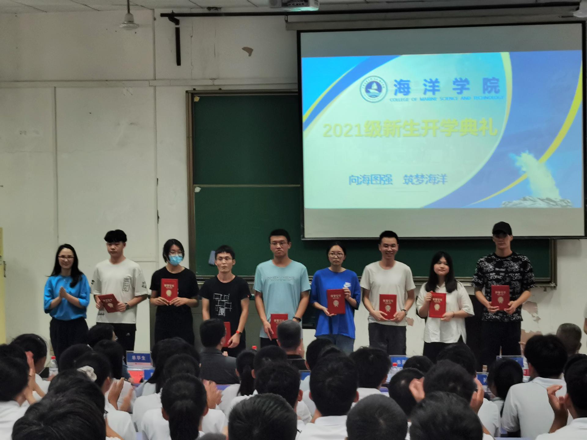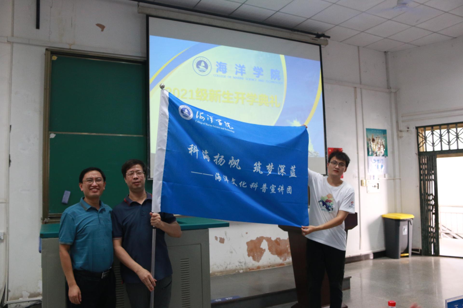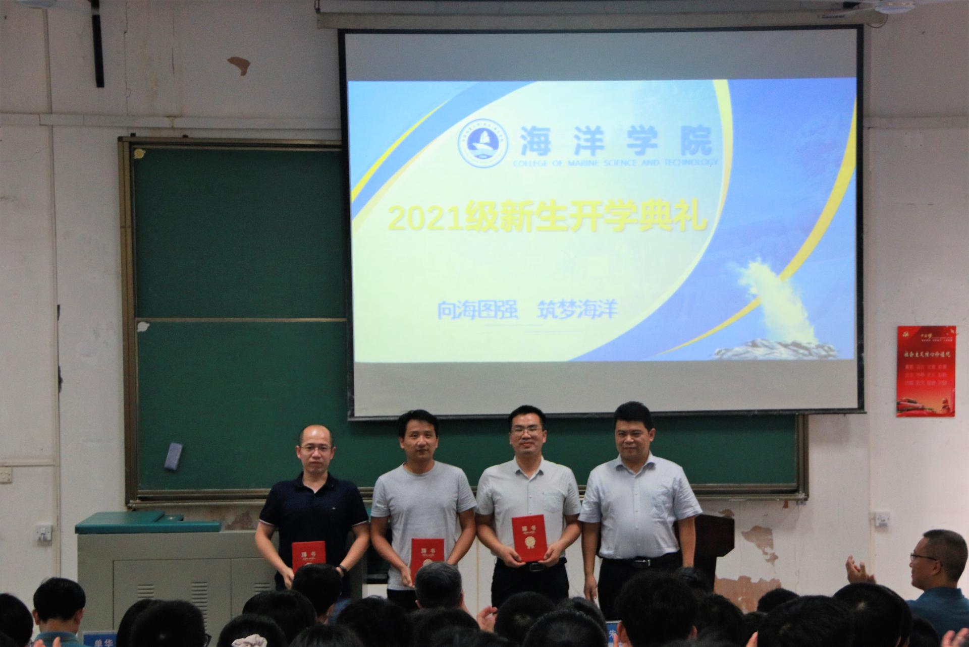 开学典礼表彰仪式上,由校团委书记朱荆萨为海洋文化节优秀营员颁发证书,科发院副院长单华生为“科海扬帆,筑梦深蓝”海洋科普宣讲团授旗,探花视频 副院长姜涛为2021级班主任颁发聘书。