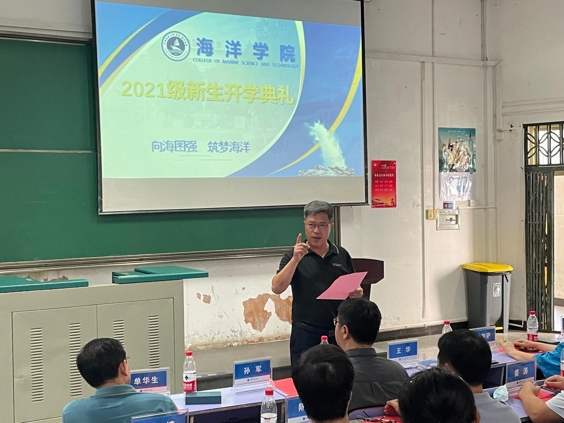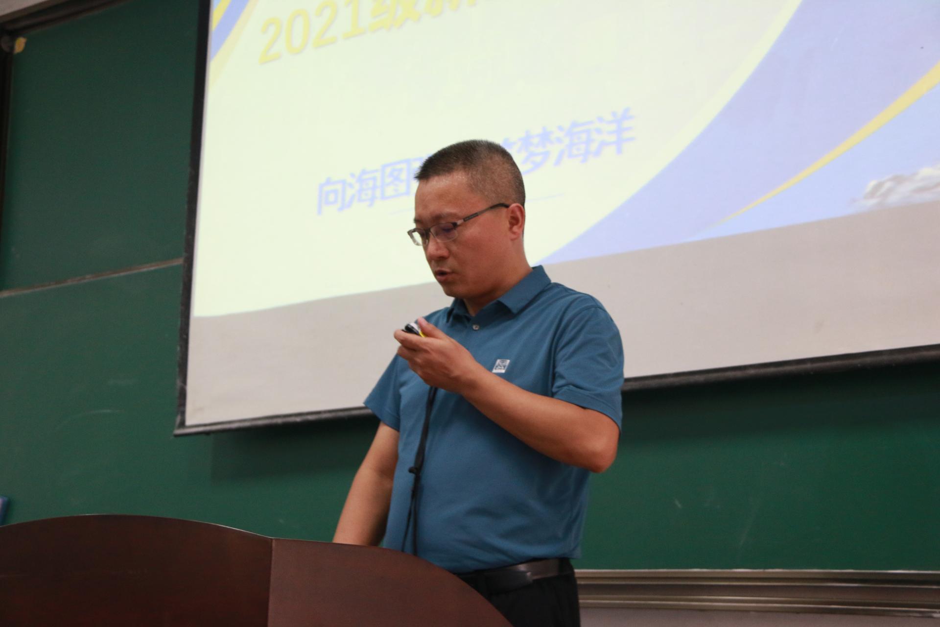 新生代表2021级本科生史相锴、老生代表2020级研究生魏子谦发言,表示作为地大海洋学子,要练就过硬本领,一齐为我国海洋事业热枕投入并不懈努力。