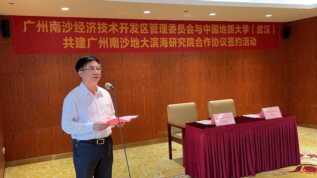 6月2日,王焰新校长带队前往广州,与广州南沙经济技术开发区管理委员签署协议,共建广州南沙地大滨海研究院(以下简称“滨海研究院”)。