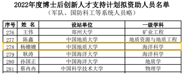 2022年6月16日,根据《全国博士后管委会办公室关于做好2022年度博士后创新人才支持计划实施工作的通知》(博管办〔2022〕8号),经专家评审,遴选出探花视频 杨姗姗副教授入选该计划。