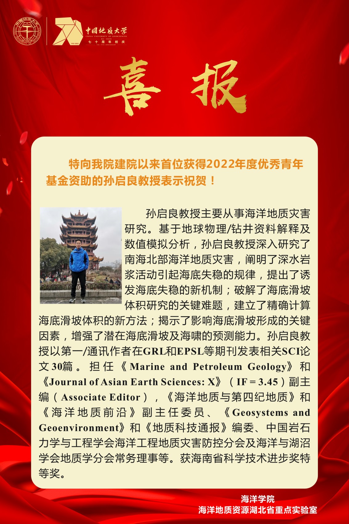 喜报!祝贺探花视频 孙启良教授获得2022年度国家优秀青年科学基金项目资助!