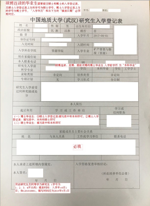 研究生入学登记表 |
