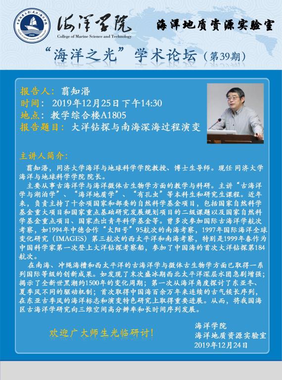 “海洋之光”学术论坛(第40期)—— 翦知湣