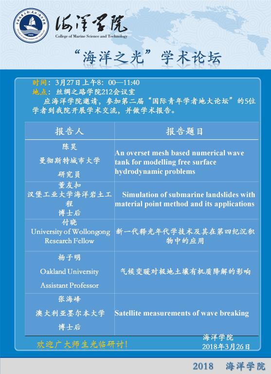 “海洋之光”学术论坛(第27期)——国际青年学者地大论坛