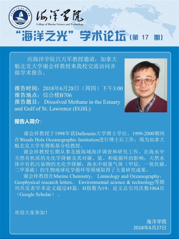 “海洋之光”学术论坛(第17期)—— 谢会祥教授