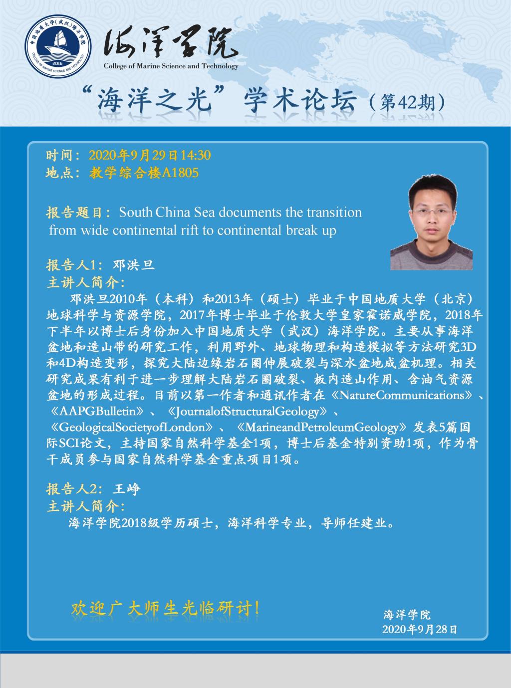 “海洋之光”学术论坛(第43期)—— 邓洪旦 王峥
