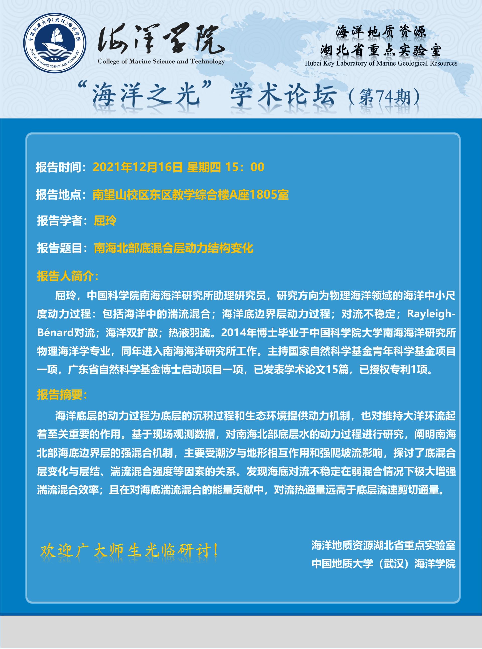 “海洋之光”学术论坛(第74期)——屈玲