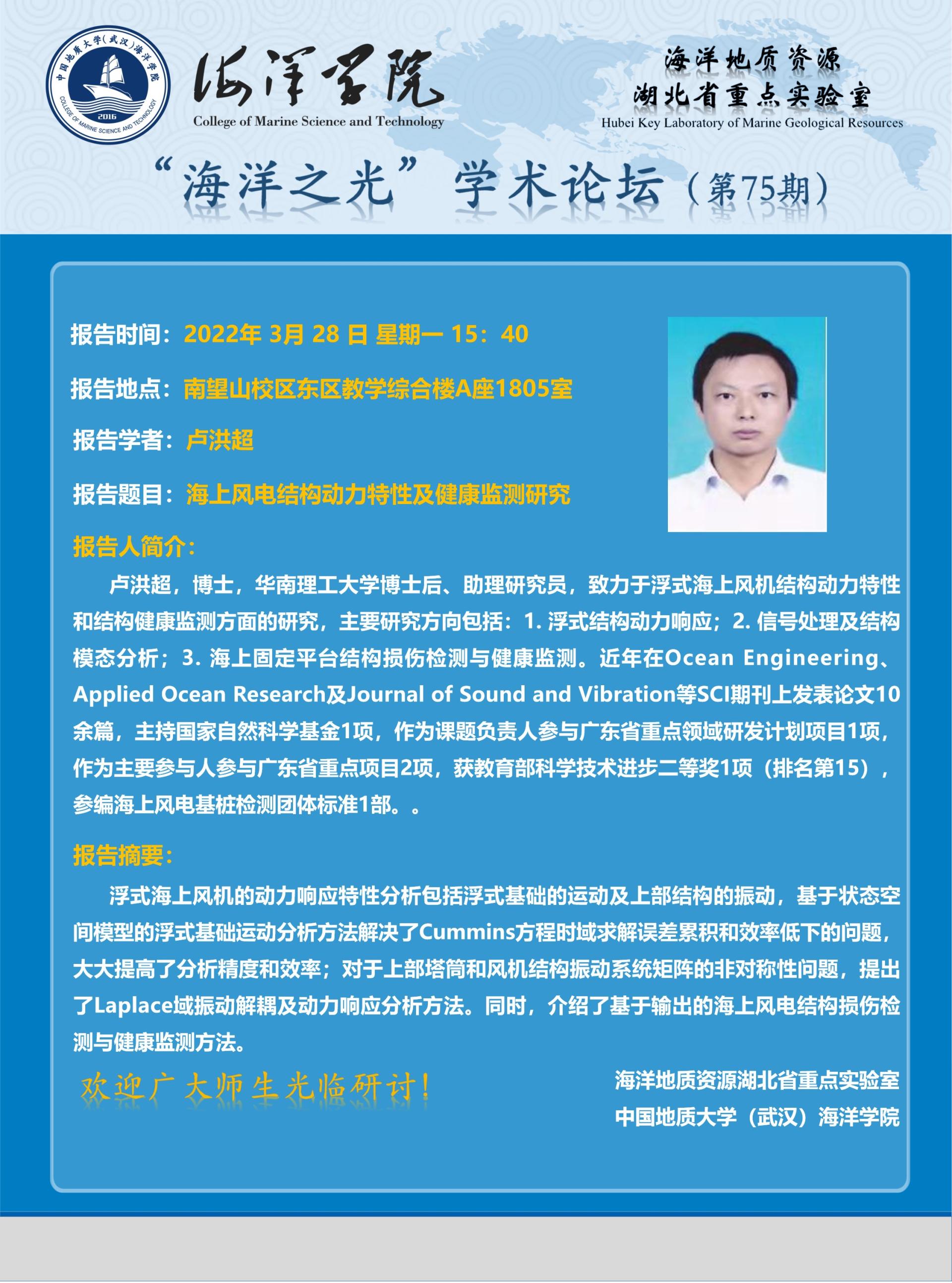 “海洋之光”学术论坛(第75期)——卢洪超