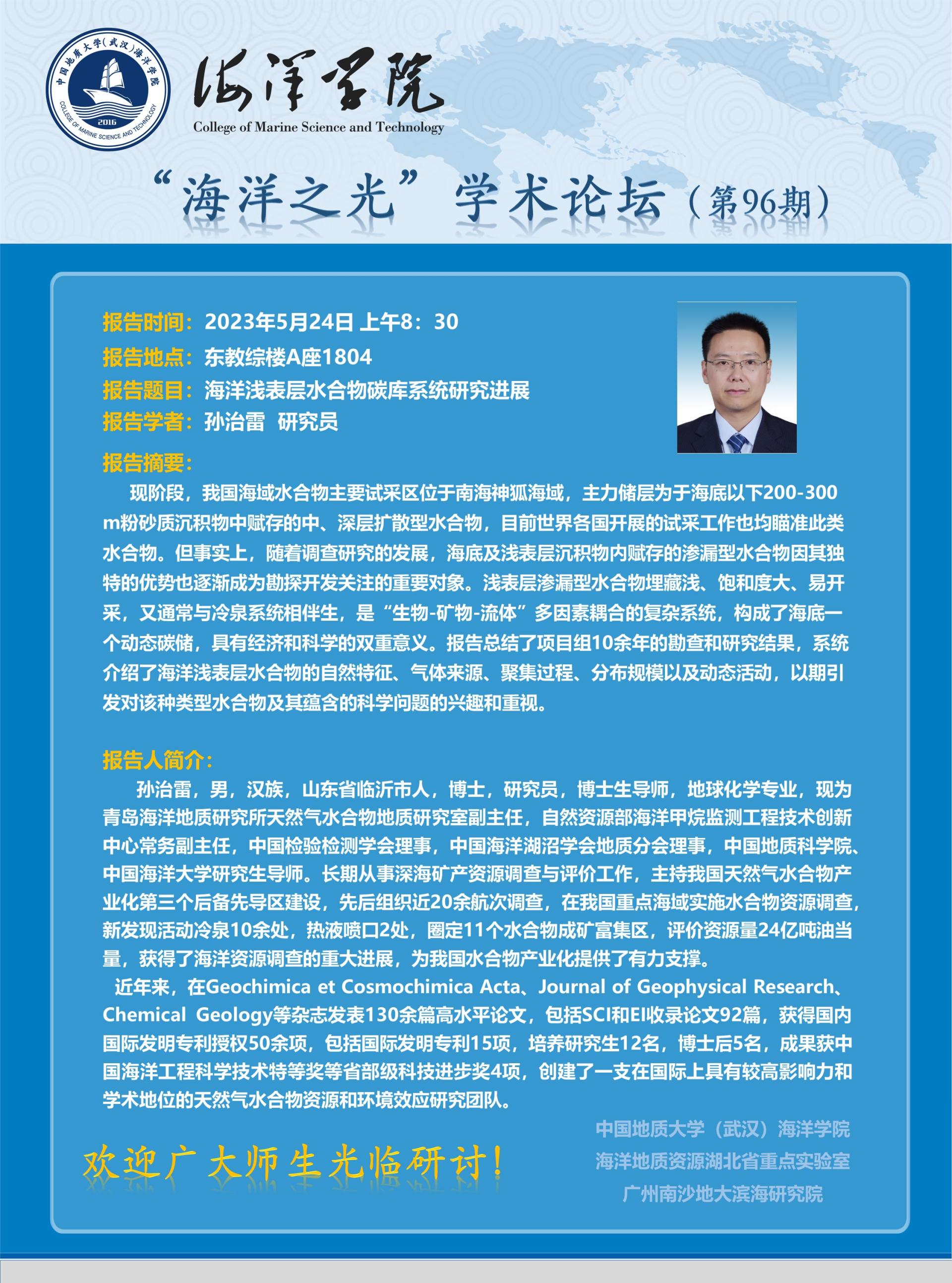 “海洋之光”学术论坛(第96期)——孙治雷