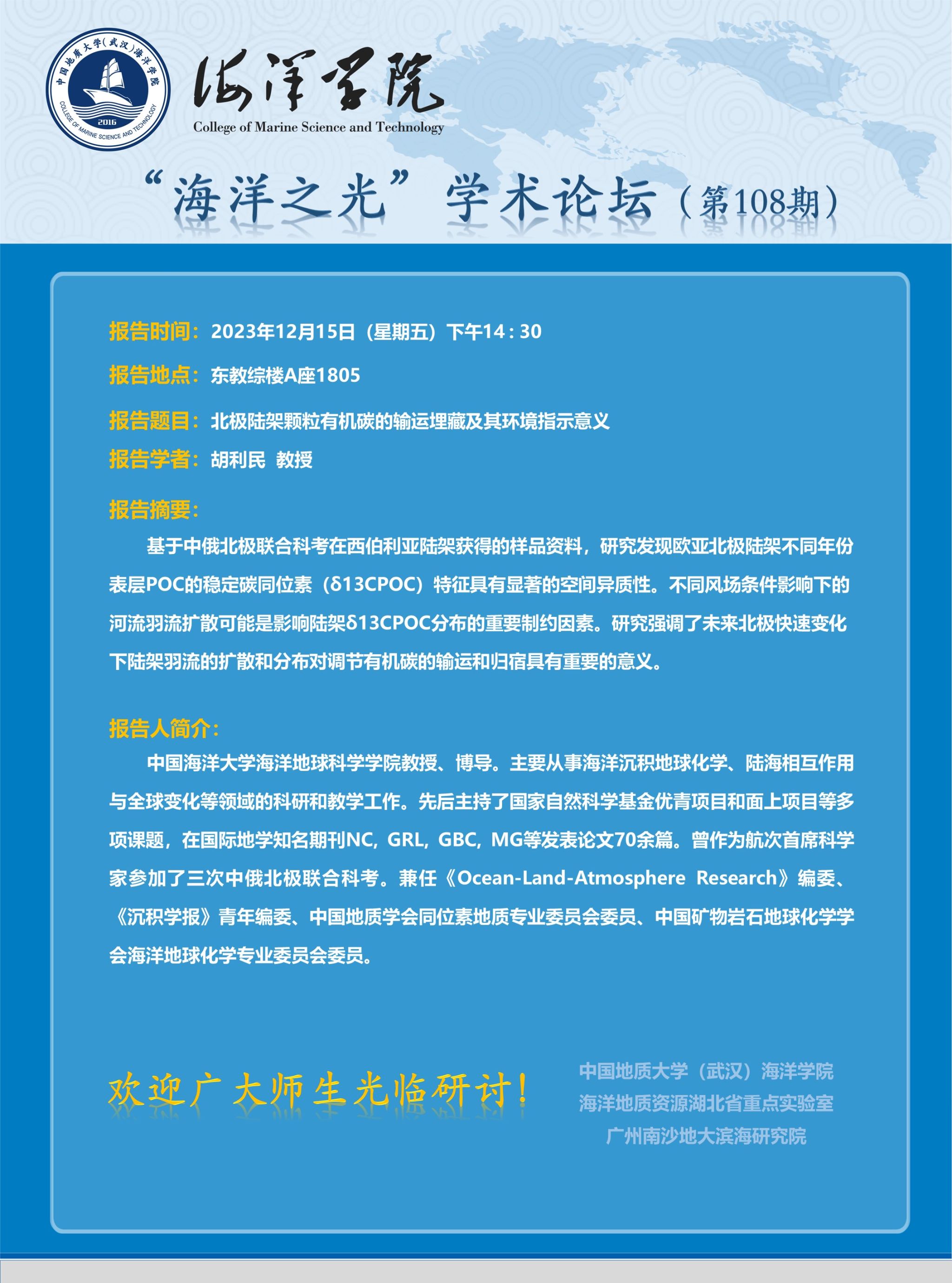 “海洋之光”学术论坛(第108期)——胡利民
