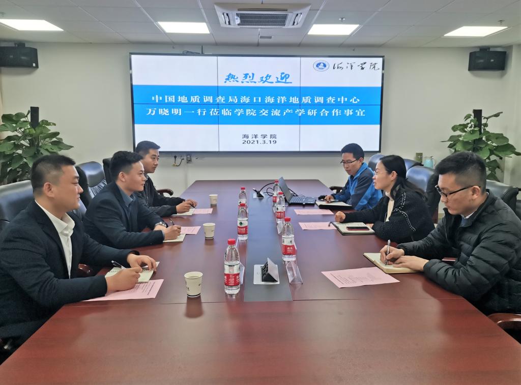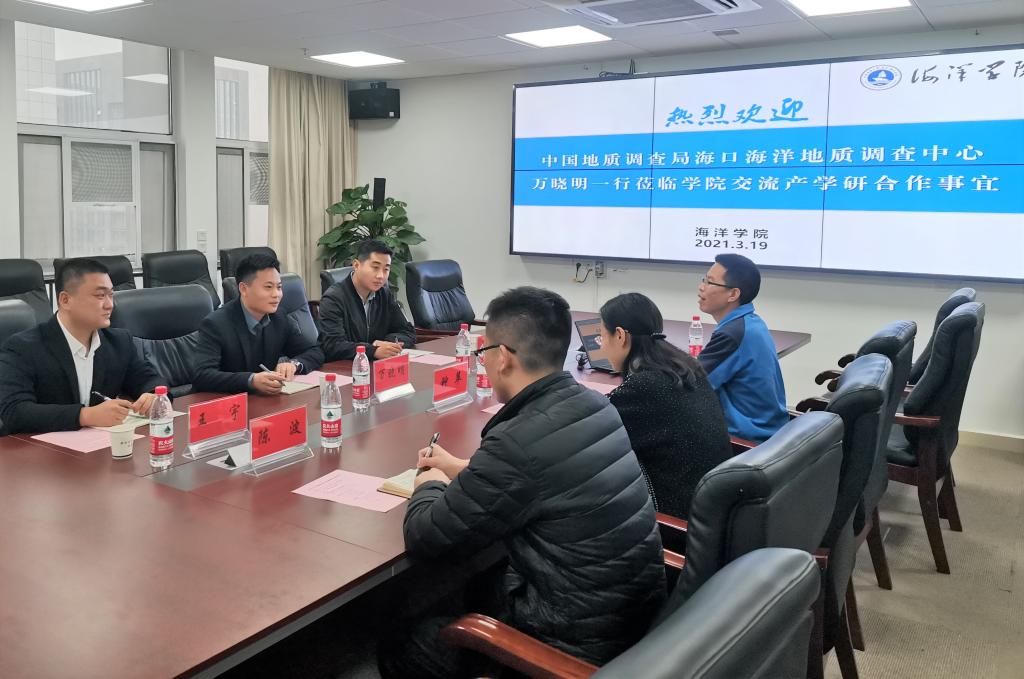 318日,中国地质调查局海口海洋地质调查中心副主任万晓明、人教室主任王宇、人教室梁超一行三人来学院调研交流,座谈会在东教A1804会议室举行。探花视频 党委副书记钟苹、副院长孙启良参加会议,会议由钟苹主持。