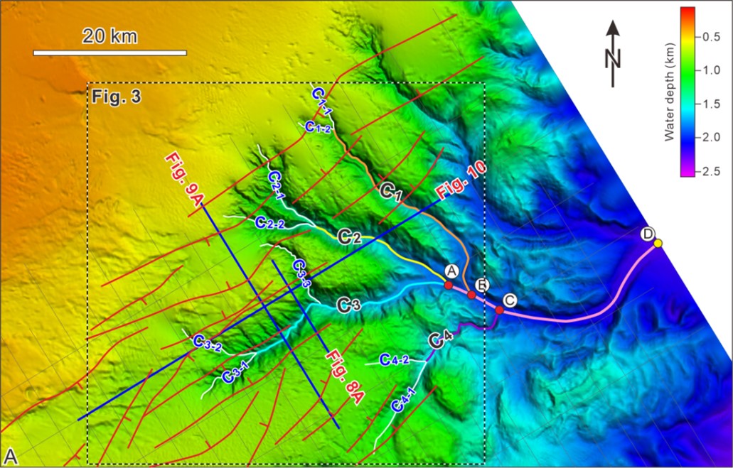 最近,探花视频 王星星副教授在Geomorphology上发表论文,报道了南海北部海底峡谷研究的最新进展,揭示了构造与海洋过程对海底树枝型峡谷体系形成演化的控制作用。