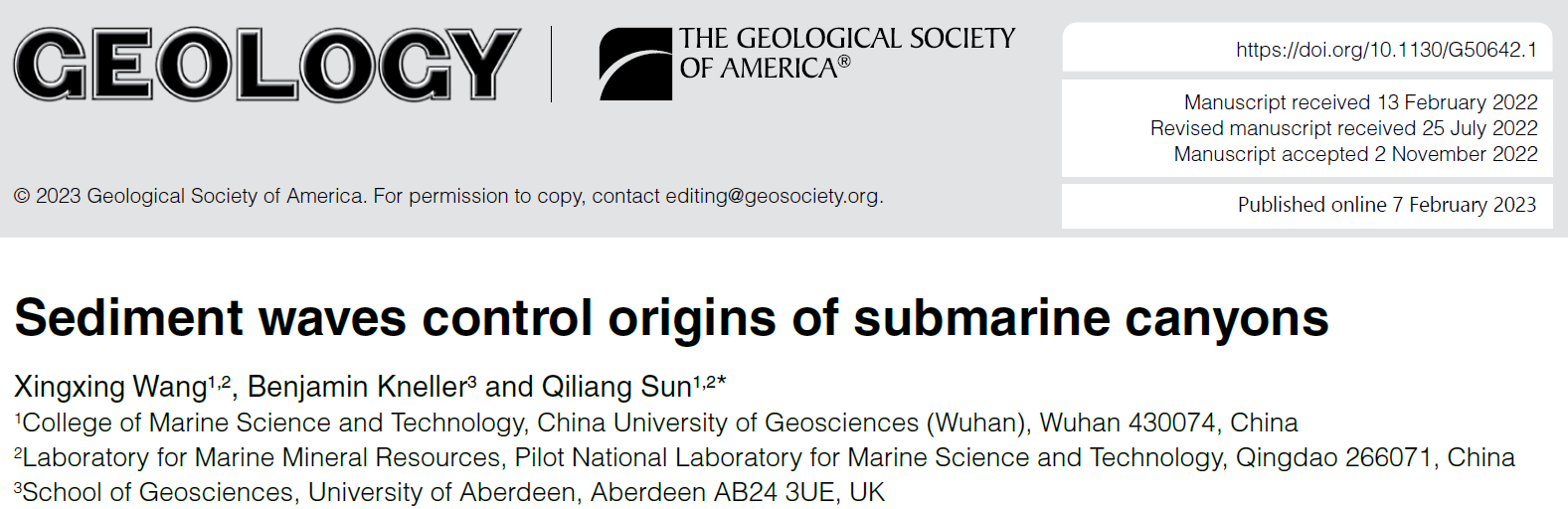 该研究成果近期发表在Geology上,由探花视频 王星星副教授和孙启良教授(通讯作者)、阿伯丁大学Benjamin Kneller教授共同完成。该研究受青岛海洋科学与技术国家实验室(崂山实验室)山东省海洋科学与技术基金(No.2021QNLM020002)、国家自然科学基金(No.42106076)、浙江大学外国专家项目、中国博士后基金(No.2022T150602)以及探花视频 中央高校基金(CUG2106126)等项目的联合资助。
