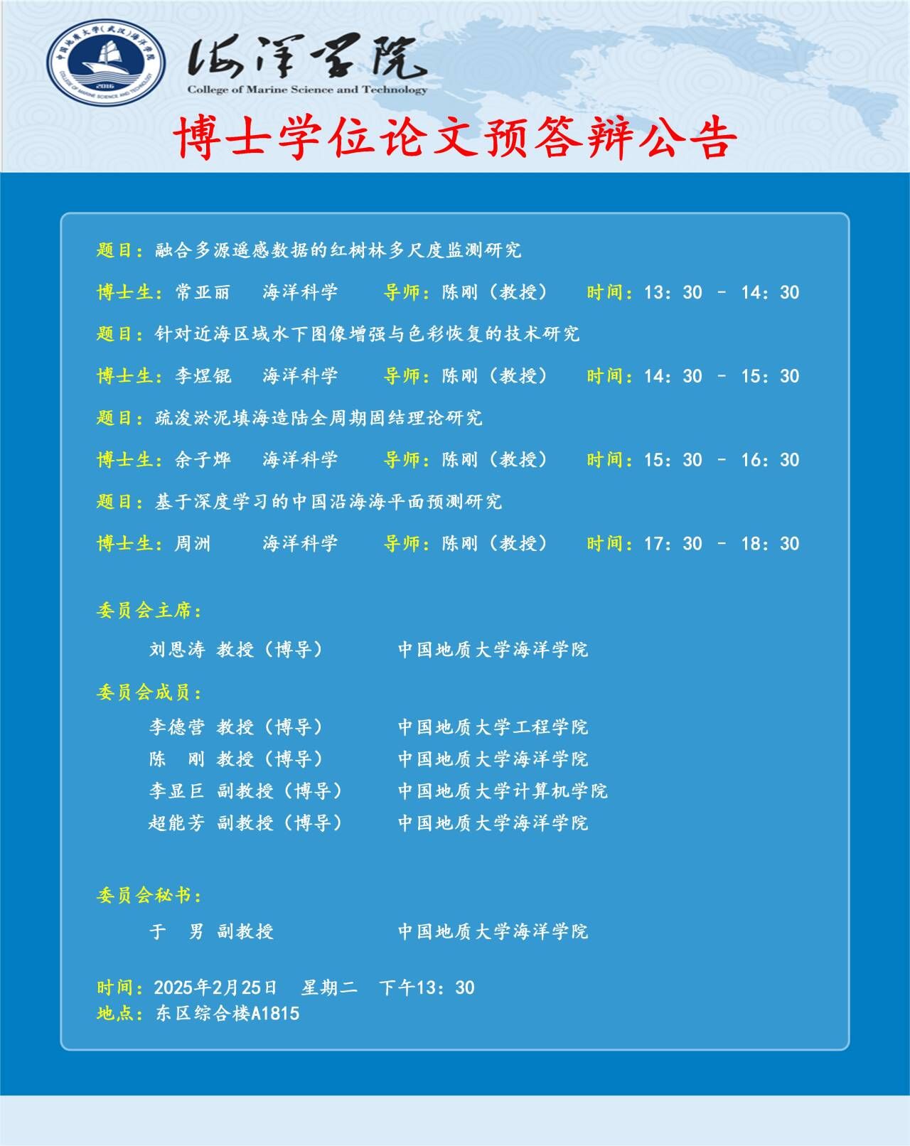 探花视频 2025年春博士学位论文预答辩公告(2月25日)
